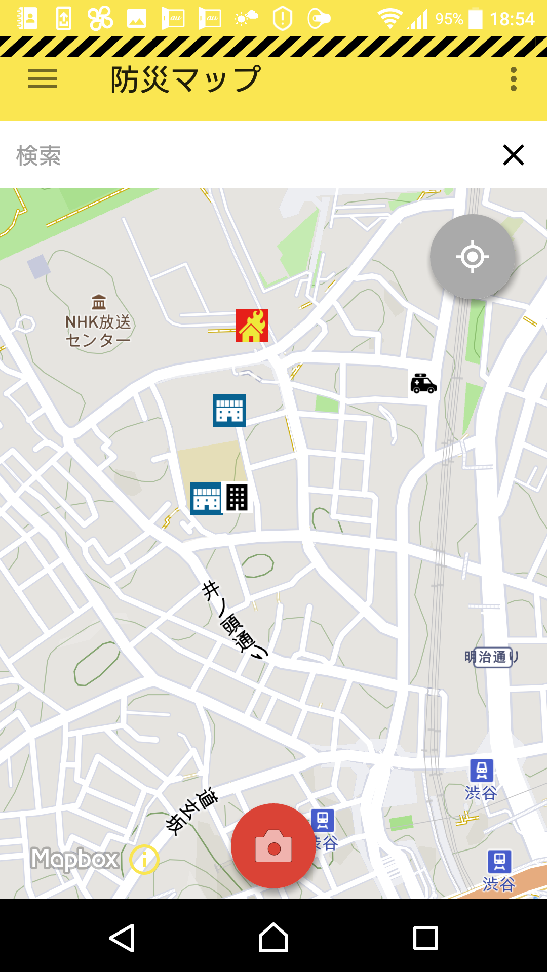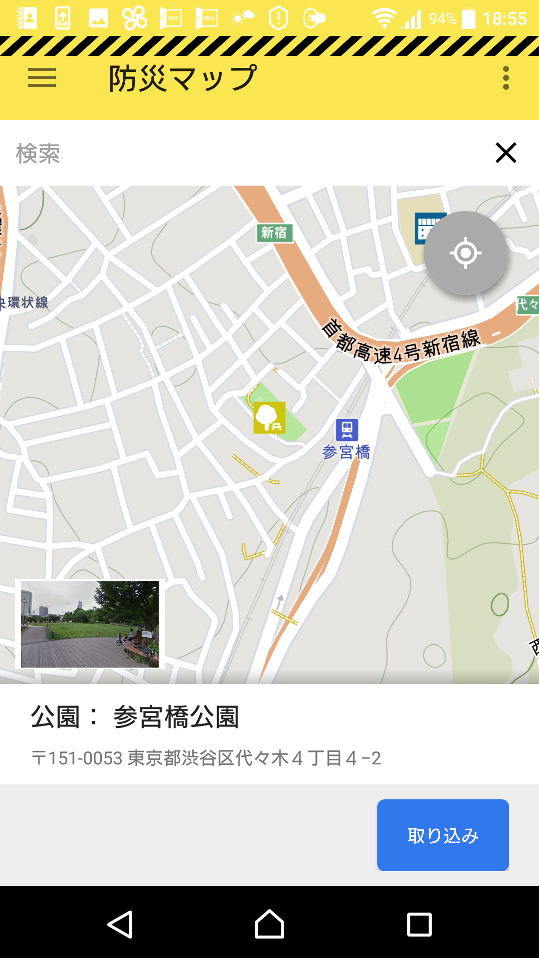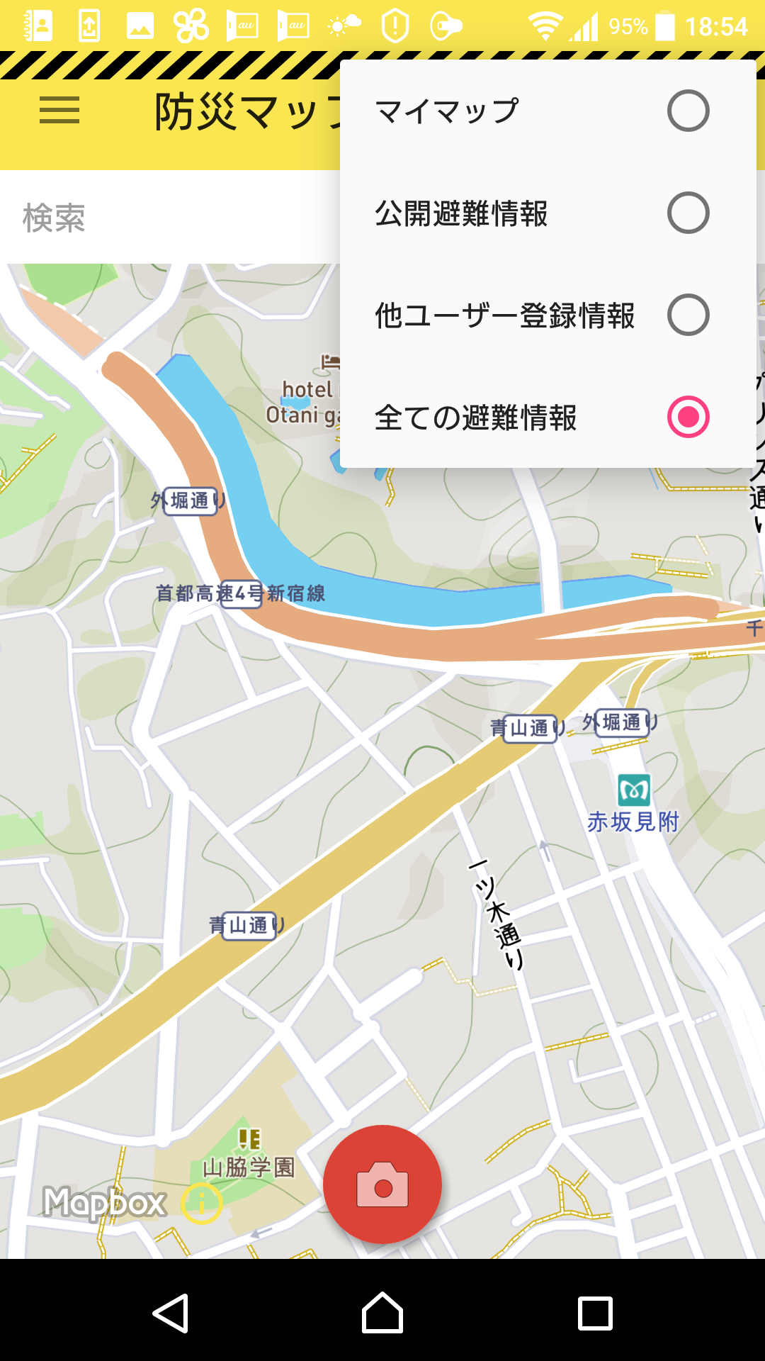 自分が登録した情報だけでなく、近所の人が登録した情報や自治体で公開している共用の避難所の情報を切り替えて表示できます。