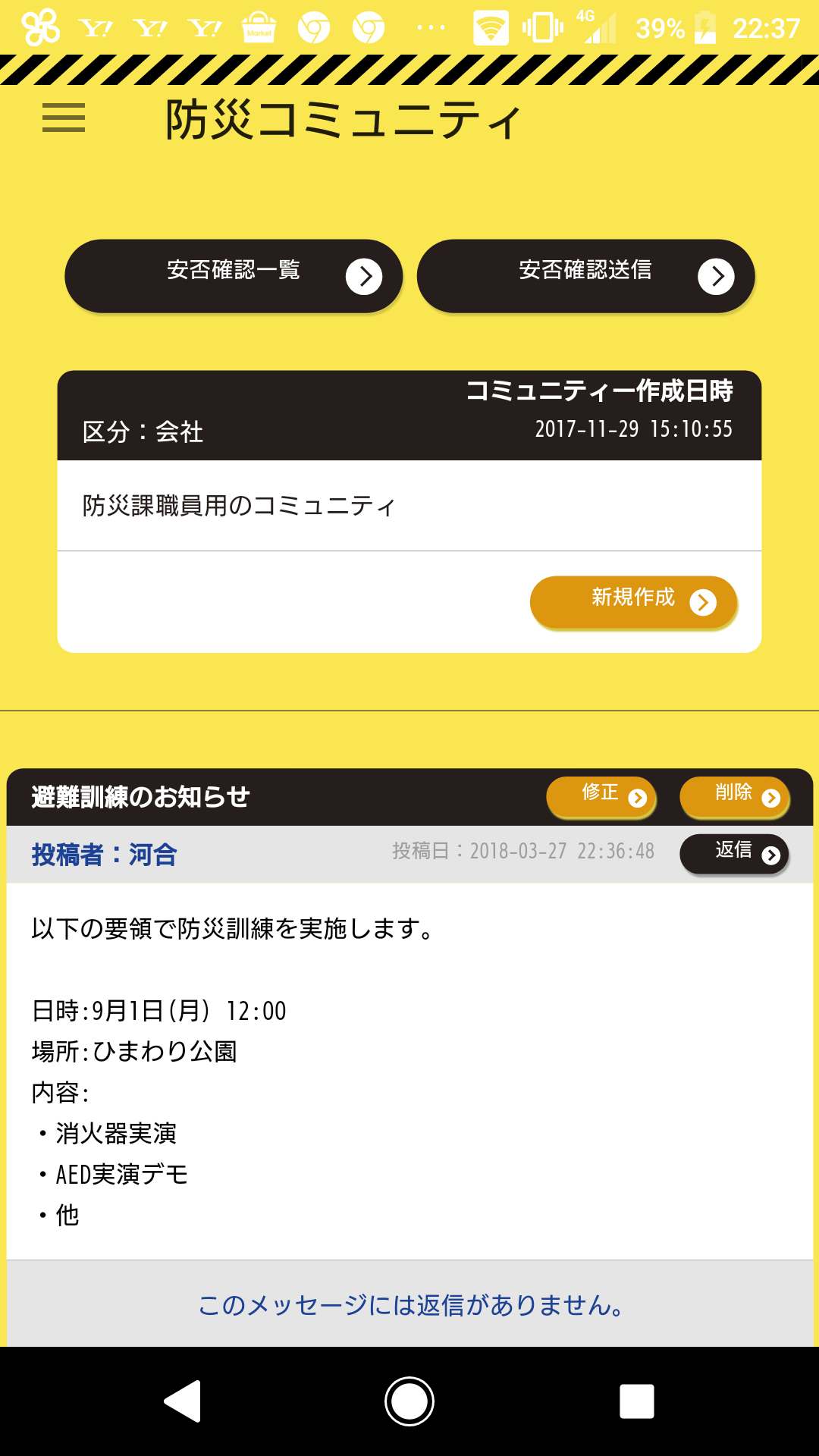 利用者が自由にコミュニティを作成し、防災に関する情報交換を行う場を提供します。以下のように利用シーンはさまざまです。