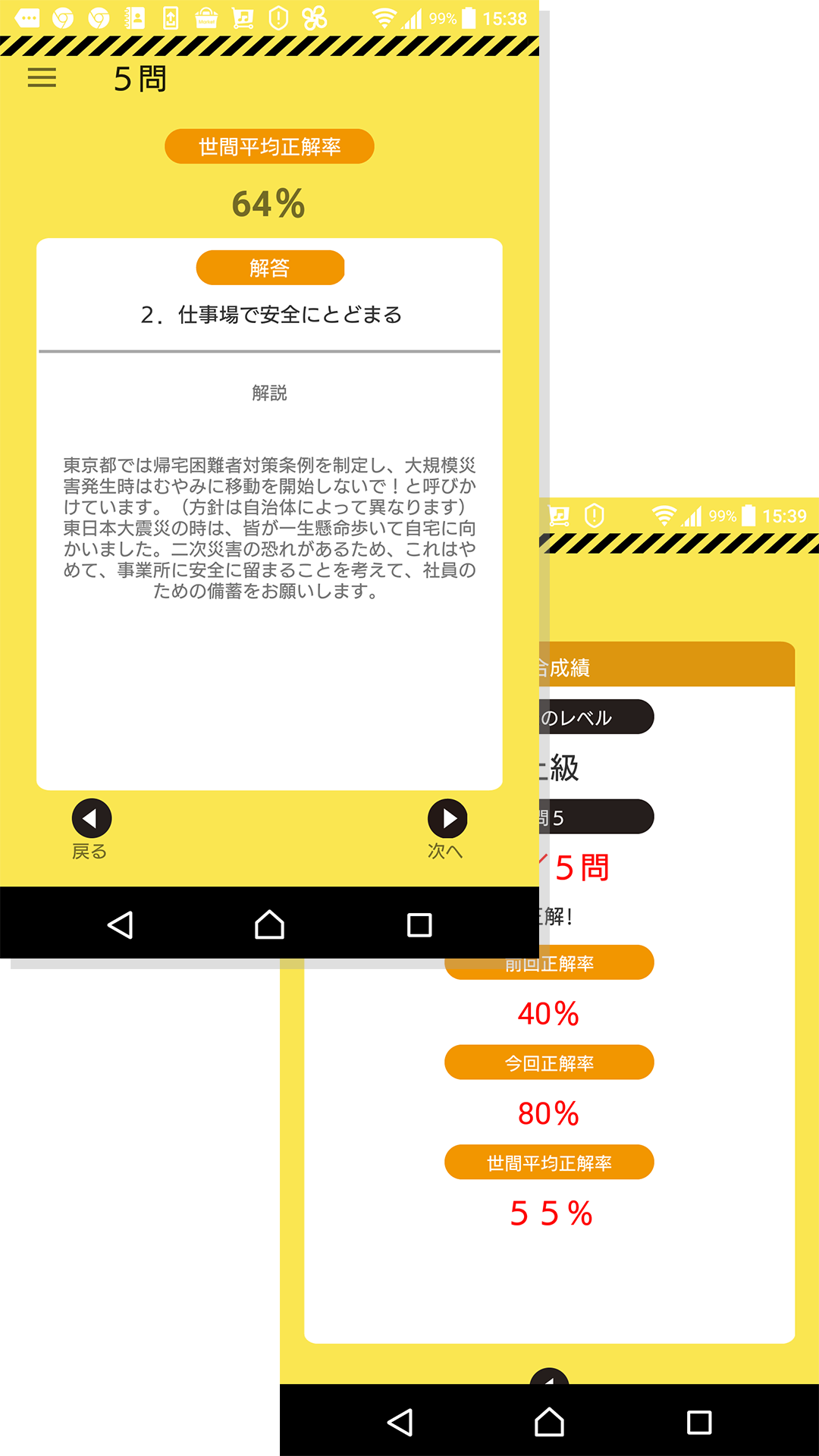 クイズの結果を集計し、住民の皆様の防災レベルを確認することもできます。